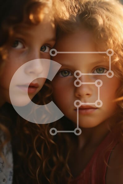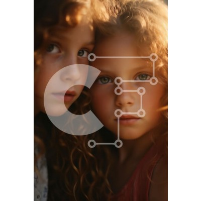 Υπάρχει δυνατότητα προσωποποίησης με δική σας φωτογραφία και προσαρμογής διαστάσεων κατόπιν παραγγελίας. Το συγεκεριμενο puzzle παρουσιαζει Αυτή η εικόνα παρουσιάζει δύο νεαρά κορίτσια με σγουρά μαλλιά να στέκονται κοντά η μία, με τα πρόσωπά τους ελαφρώς στραμμένα προς την κάμερα. Ο φωτισμός είναι απαλός και ζεστός, αναδεικνύοντας τα εκφραστικά μάτια τους και την υφή των μαλλιών τους. Το φόντο είναι θολό, δημιουργ