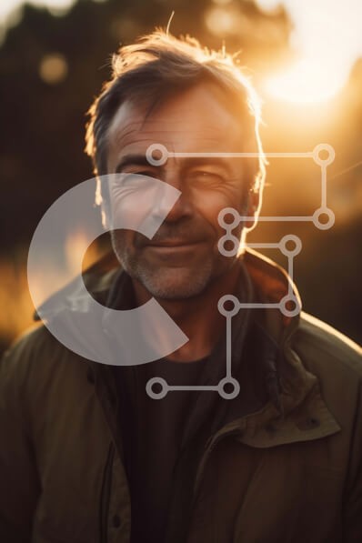 Υπάρχει δυνατότητα προσωποποίησης με δική σας φωτογραφία και προσαρμογής διαστάσεων κατόπιν παραγγελίας. Το συγεκεριμενο puzzle παρουσιαζει Αυτό είναι ένα πορτρέτο ενός μεσήλικα που στέκεται σε ένα ανοιχτό χωράφι κατά τη διάρκεια του ηλιοβασιλέματος. Φοράει ένα καφέ σακάκι, μπλε πουκάμισο και έχει μαλλιά αλατοπίπερο. Ο ήλιος δύει πίσω του και δημιουργεί μια ζεστή λάμψη στο πρόσωπό του και μια σιλουέτα του σώματός