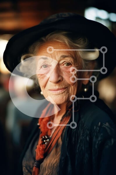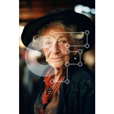 Υπάρχει δυνατότητα προσωποποίησης με δική σας φωτογραφία και προσαρμογής διαστάσεων κατόπιν παραγγελίας. Το συγεκεριμενο puzzle παρουσιαζει Στην εικόνα απεικονίζεται μια ηλικιωμένη γυναίκα που φορά μαύρο καπέλο και κοιτάζει την κάμερα. Χαμογελάει και φαίνεται να απολαμβάνει τον εαυτό της, κάτι που φαίνεται και στην έκφρασή της. Υπάρχουν πολλές λεπτομέρειες ορατές στην εικόνα, όπως τα μάτια, τα μαλλιά και τα χαρακτ