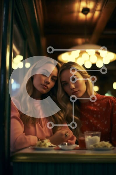 Υπάρχει δυνατότητα προσωποποίησης με δική σας φωτογραφία και προσαρμογής διαστάσεων κατόπιν παραγγελίας. Το συγεκεριμενο puzzle παρουσιαζει Αυτή η εικόνα παρουσιάζει δύο γυναίκες να κάθονται σε ένα τραπέζι σε ένα τραπεζαρία, με τη μια γυναίκα να κρατά ένα φλιτζάνι καφέ και την άλλη να κοιτάζει το τηλέφωνό της. Φαίνεται να συμμετέχουν σε συζητήσεις ή να απολαμβάνουν ο ένας την παρέα του άλλου. Το φόντο περιλαμβάνει