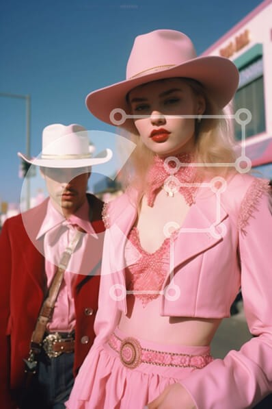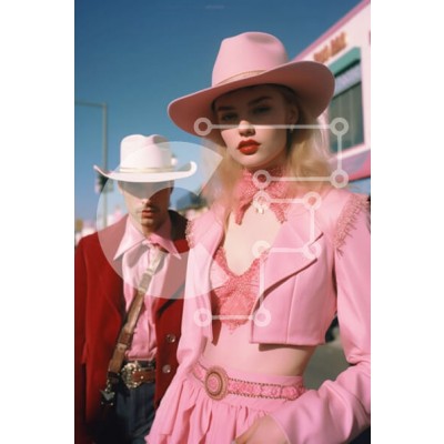 Υπάρχει δυνατότητα προσωποποίησης με δική σας φωτογραφία και προσαρμογής διαστάσεων κατόπιν παραγγελίας. Το συγεκεριμενο puzzle παρουσιαζει Αυτή η εικόνα παρουσιάζει ένα κομψό ζευγάρι που στέκεται σε έναν δρόμο της πόλης. Η γυναίκα φοράει ροζ φόρεμα και καπέλο και έχει χτενισμένα μαλλιά σε χαλαρούς κυματισμούς. Ο άντρας φοράει λευκό πουκάμισο, μαύρο παντελόνι και ροζ καουμπόικο καπέλο. Και οι δύο φορούν γυαλιά ηλί