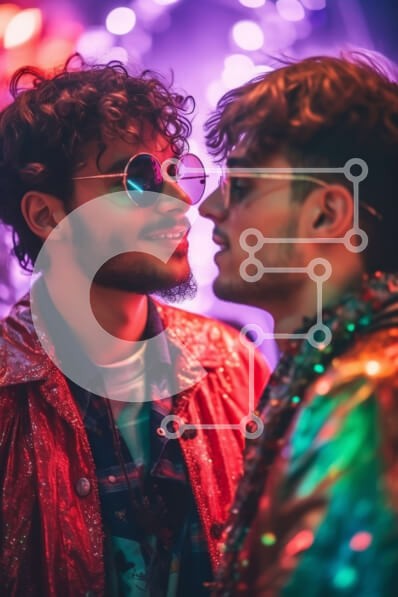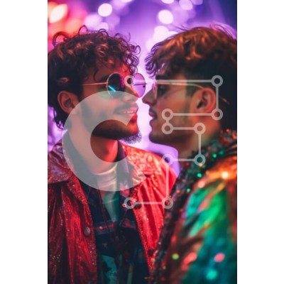 Υπάρχει δυνατότητα προσωποποίησης με δική σας φωτογραφία και προσαρμογής διαστάσεων κατόπιν παραγγελίας. Το συγεκεριμενο puzzle παρουσιαζει Αυτή η φωτογραφία απαθανατίζει δύο άντρες να διασκεδάζουν σε ένα νυχτερινό κέντρο διασκέδασης με έντονα φωτισμό. Και οι δύο φορούν πολύχρωμα ρούχα και γυαλιά ηλίου, με το χέρι του ενός άντρα γύρω από τον ώμο του άλλου. Το φόντο είναι γεμάτο με πολύχρωμα φώτα και μια μπάλα ντίσ