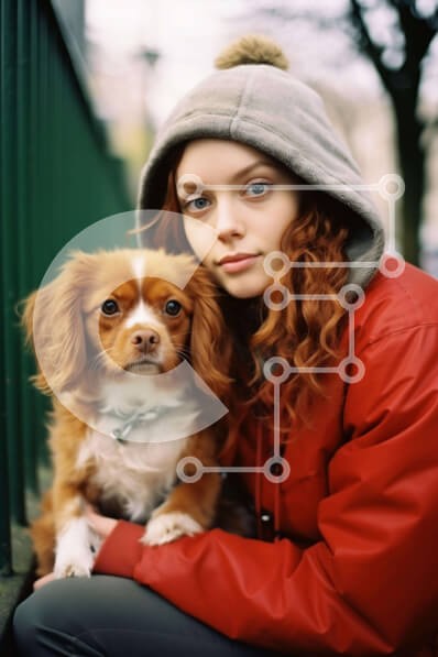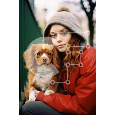 Υπάρχει δυνατότητα προσωποποίησης με δική σας φωτογραφία και προσαρμογής διαστάσεων κατόπιν παραγγελίας. Το συγεκεριμενο puzzle παρουσιαζει Η εικόνα απεικονίζει μια νεαρή γυναίκα με μακριά κόκκινα μαλλιά και καστανά μάτια να κάθεται στο έδαφος με τον σκύλο της. Κρατάει τον σκύλο στην αγκαλιά της και φαίνεται να ποζάρει στον φωτογραφικό φακό. Ο σκύλος είναι φιλικός και παιχνιδιάρης, υποδηλώνοντας ότι είναι κατοικίδ