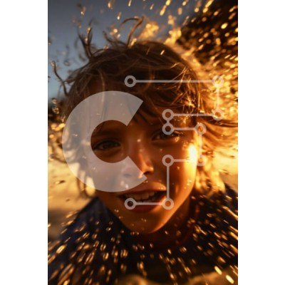 Υπάρχει δυνατότητα προσωποποίησης με δική σας φωτογραφία και προσαρμογής διαστάσεων κατόπιν παραγγελίας. Το συγεκεριμενο puzzle παρουσιαζει Αυτή η εικόνα παρουσιάζει ένα παιχνιδιάρικο νεαρό αγόρι με ατημέλητα μαλλιά, που στέκεται σε μια αμμώδη παραλία με τα κύματα να σκάνε στο βάθος. Φοράει μπλε πουκάμισο και σορτς και ο ήλιος δύει ρίχνοντας μια ζεστή πορτοκαλί λάμψη στο πρόσωπό του. Η χρήση του φωτός και των σκιώ