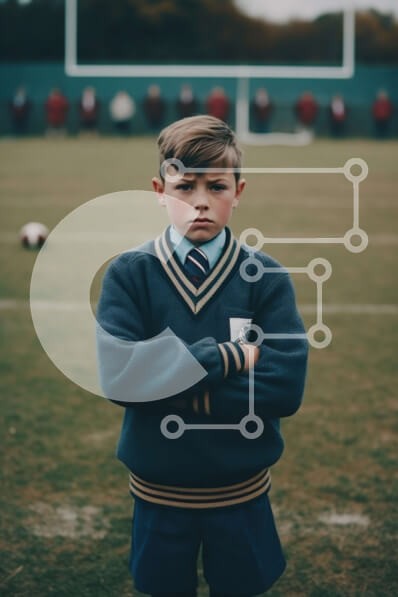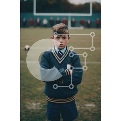 Υπάρχει δυνατότητα προσωποποίησης με δική σας φωτογραφία και προσαρμογής διαστάσεων κατόπιν παραγγελίας. Το συγεκεριμενο puzzle παρουσιαζει Αυτή η εικόνα παρουσιάζει ένα νεαρό αγόρι με σχολική στολή να στέκεται σε ένα γήπεδο ποδοσφαίρου. Έχει σταυρωμένα τα χέρια του και φαίνεται να είναι συγκεντρωμένος στο παιχνίδι που ακολουθεί. Η εικόνα αποτυπώνει το πνεύμα της αποφασιστικότητας και της υπερηφάνειας που συνδέετα