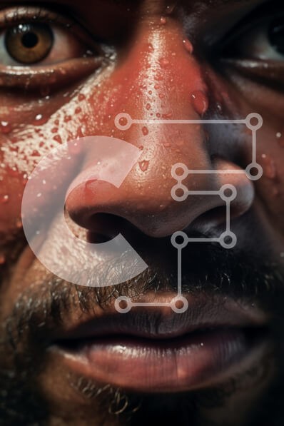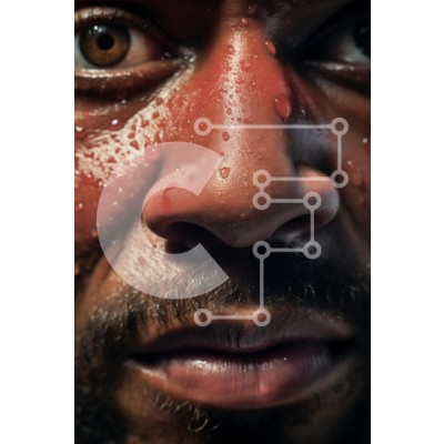 Υπάρχει δυνατότητα προσωποποίησης με δική σας φωτογραφία και προσαρμογής διαστάσεων κατόπιν παραγγελίας. Το συγεκεριμενο puzzle παρουσιαζει Αυτή η εικόνα παρουσιάζει ένα κοντινό πλάνο του προσώπου ενός άνδρα, τονίζοντας τα εκφραστικά του χαρακτηριστικά. Το δέρμα γυαλίζει με σταγονίδια νερού, υποδηλώνοντας ιδρώτα ή υγρασία και ο φωτισμός τονίζει τα περιγράμματα και τις υφές του προσώπου του. Τα μάτια του είναι έντο