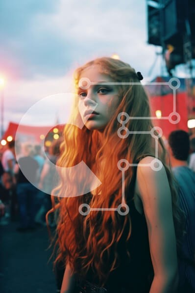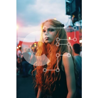 Υπάρχει δυνατότητα προσωποποίησης με δική σας φωτογραφία και προσαρμογής διαστάσεων κατόπιν παραγγελίας. Το συγεκεριμενο puzzle παρουσιαζει Η εικόνα απεικονίζει μια νεαρή γυναίκα με μακριά, κόκκινα μαλλιά να στέκεται στη μέση ενός υπαίθριου πλήθους. Κοιτάζει απευθείας την κάμερα, υποδεικνύοντας την εστίασή της στο περιβάλλον της. Πολλά φώτα περιβάλλουν το κορίτσι, υπονοώντας μια πηγή φωτισμού στη σκηνή. Ένα μοναδ