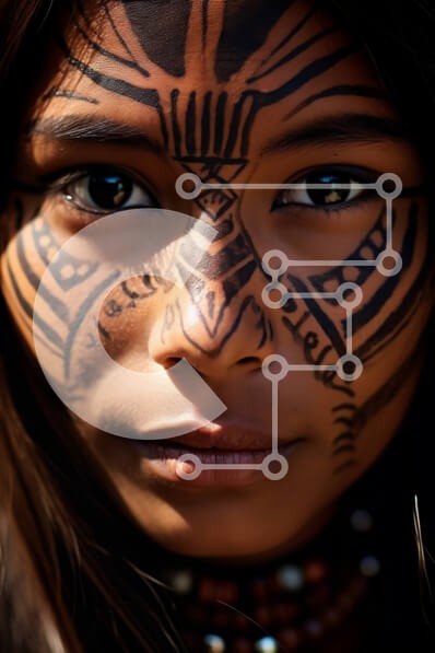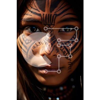 Υπάρχει δυνατότητα προσωποποίησης με δική σας φωτογραφία και προσαρμογής διαστάσεων κατόπιν παραγγελίας. Το συγεκεριμενο puzzle παρουσιαζει Αυτή η εικόνα παρουσιάζει μια γυναίκα με φυλετική ζωγραφική προσώπου. Έχει ασπρόμαυρες ρίγες στο μέτωπο, τα μάγουλα και το πηγούνι της, με μαύρα περιγράμματα μάτια και κόκκινα χείλη. Η σοβαρή της έκφραση προσθέτει στην ένταση της εικόνας. Ένα μοναδικό puzzle που συνδυάζει ποι