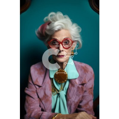 Υπάρχει δυνατότητα προσωποποίησης με δική σας φωτογραφία και προσαρμογής διαστάσεων κατόπιν παραγγελίας. Το συγεκεριμενο puzzle παρουσιαζει Αυτή η εικόνα απεικονίζει μια ηλικιωμένη γυναίκα με γυαλιά και ένα ροζ σακάκι. Κάθεται με τα χέρια στους γοφούς της και ασχολείται με μια δραστηριότητα. Η γυναίκα είναι στολισμένη με κοσμήματα, μεταξύ των οποίων σκουλαρίκια και περιδέραια. Ένα μοναδικό puzzle που συνδυάζει πο