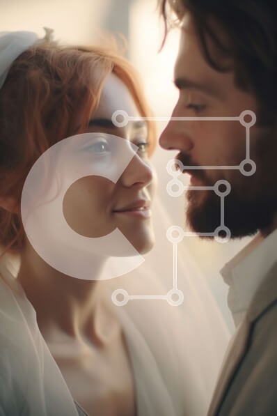 Υπάρχει δυνατότητα προσωποποίησης με δική σας φωτογραφία και προσαρμογής διαστάσεων κατόπιν παραγγελίας. Το συγεκεριμενο puzzle παρουσιαζει Αυτή η εικόνα δείχνει μια νύφη και τον γαμπρό να κοιτάζονται με κλειστά μάτια, υποδηλώνοντας μια οικεία και ρομαντική στιγμή. Στο βάθος διακρίνονται τα καστανοκόκκινα μαλλιά της νύφης που συμπληρώνουν το νυφικό της. Το ζευγάρι είναι ντυμένο με λευκά νυφικά, που συμβολίζουν τη