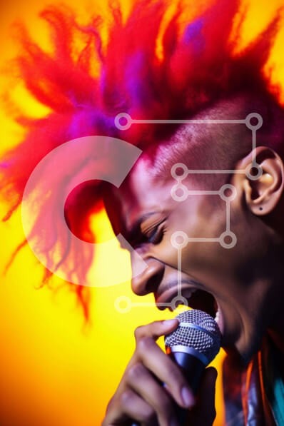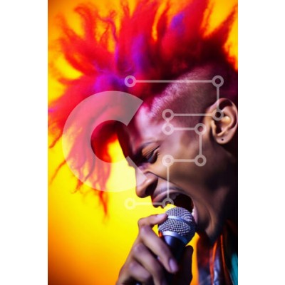 Υπάρχει δυνατότητα προσωποποίησης με δική σας φωτογραφία και προσαρμογής διαστάσεων κατόπιν παραγγελίας. Το συγεκεριμενο puzzle παρουσιαζει Η εικόνα δείχνει έναν νεαρό άνδρα με πολύχρωμα μαλλιά και dreadlocks να τραγουδά σε ένα ανοιχτό μικρόφωνο. Τα ζωηρά μαλλιά του κάνουν υπέροχη αντίθεση με το κίτρινο φόντο, τονίζοντας την παρουσία του. Η ενδυμασία του άνδρα υποδηλώνει τη συμμετοχή του στην παράσταση ή τη διασκέ