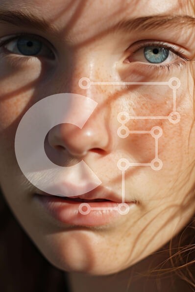 Υπάρχει δυνατότητα προσωποποίησης με δική σας φωτογραφία και προσαρμογής διαστάσεων κατόπιν παραγγελίας. Το συγεκεριμενο puzzle παρουσιαζει Μια νεαρή γυναίκα με φακίδες δέρμα και μπλε μάτια κοιτάζει κατευθείαν στην κάμερα, με σκιές να περιβάλλουν το πρόσωπό της. Τα μαλλιά της είναι ορατά πίσω από το κεφάλι της, υποδηλώνοντας ότι μπορεί να φοράει μακιγιάζ ή να βάζει eyeliner. Ένα μοναδικό puzzle που συνδυάζει ποιό
