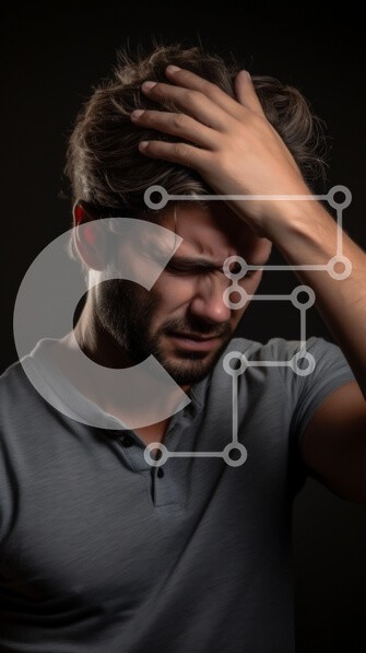 Υπάρχει δυνατότητα προσωποποίησης με δική σας φωτογραφία και προσαρμογής διαστάσεων κατόπιν παραγγελίας. Το συγεκεριμενο puzzle παρουσιαζει Αυτή η εικόνα παρουσιάζει έναν άνδρα με ταλαιπωρημένη έκφραση, που κρατά το κεφάλι του σαν να πονάει. Έχει σκούρα, κυματιστά μαλλιά και φοράει ένα γκρι πουκάμισο. Το φόντο είναι σκοτεινό, γεγονός που ενισχύει τη δραματική διάθεση της σκηνής. Ο φωτισμός αναδεικνύει τα χαρακτηρι