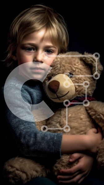 Υπάρχει δυνατότητα προσωποποίησης με δική σας φωτογραφία και προσαρμογής διαστάσεων κατόπιν παραγγελίας. Το συγεκεριμενο puzzle παρουσιαζει Αυτή η εικόνα απεικονίζει ένα νεαρό αγόρι να αγκαλιάζει ένα λούτρινο αρκουδάκι. Το αγόρι φοράει ένα γκρι πουλόβερ και έχει ξανθά μαλλιά. Το αρκουδάκι έχει καφέ γούνα και κόκκινο φιόγκο στο λαιμό του. Το φόντο είναι μαύρο. Ένα μοναδικό puzzle που συνδυάζει ποιότητα, αισθητική