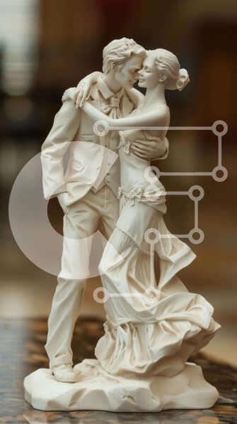 Υπάρχει δυνατότητα προσωποποίησης με δική σας φωτογραφία και προσαρμογής διαστάσεων κατόπιν παραγγελίας. Το συγεκεριμενο puzzle παρουσιαζει Η εικόνα δείχνει ένα λευκό ειδώλιο δύο ανθρώπων που αγκαλιάζονται και φιλιούνται σε ένα τραπέζι, υποδεικνύοντας ότι μπορεί να είναι μέρος μιας διακοσμητικής διάταξης. Το ειδώλιο είναι καλά συντηρημένο, χωρίς ορατά σημάδια φθοράς ή φθοράς. Ένα μοναδικό puzzle που συνδυάζει ποι