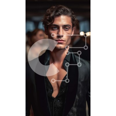 Υπάρχει δυνατότητα προσωποποίησης με δική σας φωτογραφία και προσαρμογής διαστάσεων κατόπιν παραγγελίας. Το συγεκεριμενο puzzle παρουσιαζει Αυτή η εικόνα είναι ένας σοβαρός άνδρας ντυμένος με μαύρο σμόκιν με λευκό πουκάμισο και μαύρη γραβάτα. Στέκεται σε ένα δωμάτιο με χαμηλό φωτισμό με έναν πολυέλαιο να κρέμεται από το ταβάνι. Στο βάθος υπάρχουν άνθρωποι ντυμένοι με επίσημα ρούχα και τραπέζια με κεριά και διακοσμ