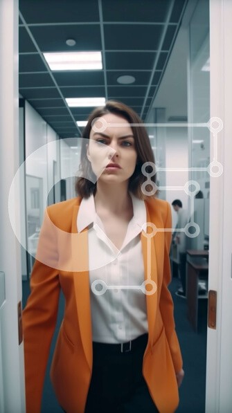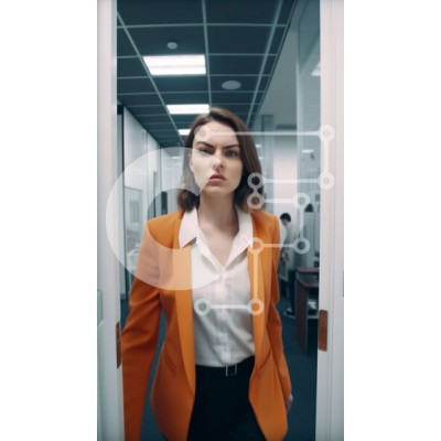 Υπάρχει δυνατότητα προσωποποίησης με δική σας φωτογραφία και προσαρμογής διαστάσεων κατόπιν παραγγελίας. Το συγεκεριμενο puzzle παρουσιαζει Η εικόνα δείχνει μια γυναίκα με πορτοκαλί σακάκι και λευκό πουκάμισο να στέκεται σε ένα διάδρομο, απέναντι στην κάμερα με μια σοβαρή έκφραση. Φαίνεται συγκεντρωμένη και αποφασισμένη. Ένα μοναδικό puzzle που συνδυάζει ποιότητα, αισθητική και εμπειρία. Υλικό: Κατασκευασμένο απ