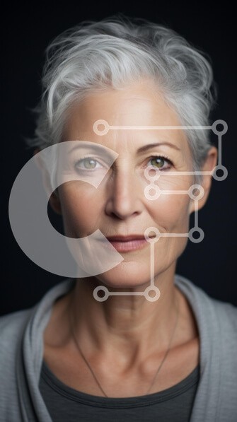 Υπάρχει δυνατότητα προσωποποίησης με δική σας φωτογραφία και προσαρμογής διαστάσεων κατόπιν παραγγελίας. Το συγεκεριμενο puzzle παρουσιαζει Αυτή η εικόνα παρουσιάζει μια ώριμη γυναίκα με κοντά γκρίζα μαλλιά και πράσινα μάτια, που απεικονίζει μια ήρεμη και σίγουρη έκφραση. Φοράει ένα ανοιχτό γκρι πουλόβερ και εμφανίζεται σε σκούρο φόντο, που τονίζει τα χαρακτηριστικά του προσώπου της. Ο φωτισμός αναδεικνύει τα περι