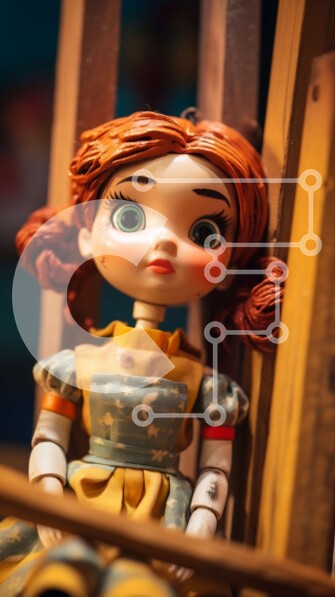 Υπάρχει δυνατότητα προσωποποίησης με δική σας φωτογραφία και προσαρμογής διαστάσεων κατόπιν παραγγελίας. Το συγεκεριμενο puzzle παρουσιαζει Αυτή η εικόνα παρουσιάζει μια εξαίσια κούκλα με κόκκινα μαλλιά και μπλε μάτια. Φοράει ένα κίτρινο και μπλε φόρεμα που συμπληρώνεται από μια λευκή ποδιά και κάθεται σε έναν ξύλινο πάγκο στολισμένο με ένα κίτρινο και άσπρο ριγέ μαξιλάρι. Το φόντο δείχνει έναν ξύλινο τοίχο με ένα
