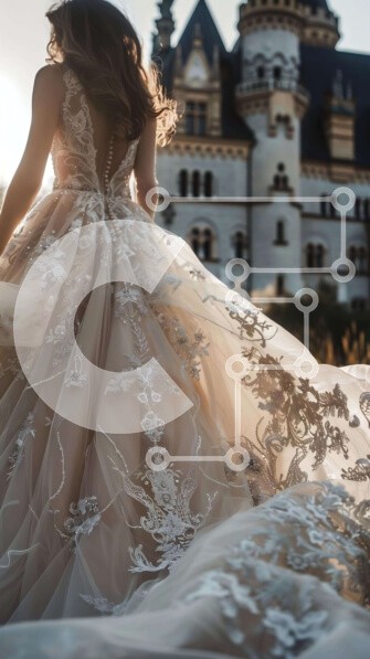 Υπάρχει δυνατότητα προσωποποίησης με δική σας φωτογραφία και προσαρμογής διαστάσεων κατόπιν παραγγελίας. Το συγεκεριμενο puzzle παρουσιαζει Η εικόνα απεικονίζει μια γυναίκα να φορά ένα κομψό νυφικό και να στέκεται μπροστά σε ένα κάστρο. Το πίσω μέρος του φορέματός της φαίνεται, υποδηλώνοντας κίνηση. Μπορεί να δείχνει ότι η νύφη είναι έτοιμη να περπατήσει στο διάδρομο. Ένα μοναδικό puzzle που συνδυάζει ποιότητα, α