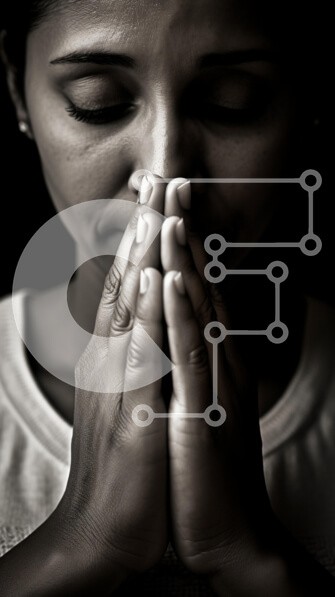 Υπάρχει δυνατότητα προσωποποίησης με δική σας φωτογραφία και προσαρμογής διαστάσεων κατόπιν παραγγελίας. Το συγεκεριμενο puzzle παρουσιαζει Μια γυναίκα φαίνεται με τα μάτια της κλειστά, τα χέρια της πιεσμένα μεταξύ τους σε στάση προσευχής. Η εικόνα είναι ασπρόμαυρη, τονίζοντας τη γαλήνια έκφρασή της και τις λεπτομέρειες των χεριών της. Ο φωτισμός δημιουργεί ένα δραματικό αποτέλεσμα, τονίζοντας τα περιγράμματα του