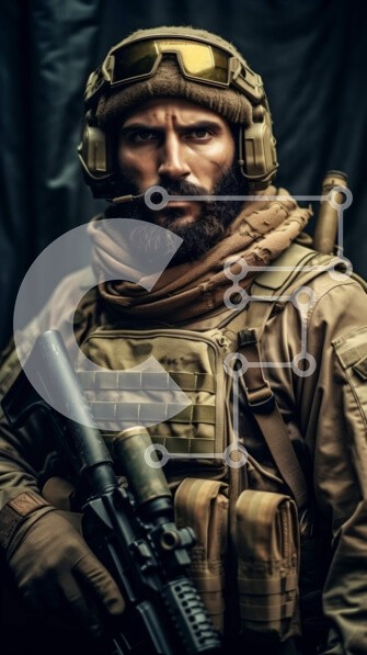 Υπάρχει δυνατότητα προσωποποίησης με δική σας φωτογραφία και προσαρμογής διαστάσεων κατόπιν παραγγελίας. Το συγεκεριμενο puzzle παρουσιαζει Αυτή η εικόνα είναι ενός στρατιώτη με στολή παραλλαγής που κρατά ένα τουφέκι εφόδου. Στέκεται μπροστά σε ένα σκοτεινό φόντο, δίνοντας την εντύπωση ότι είναι σε επιφυλακή και έτοιμος να προστατεύσει. Το πρόσωπο του στρατιώτη δεν φαίνεται, αφήνοντας μυστήριο την ταυτότητά του. Η