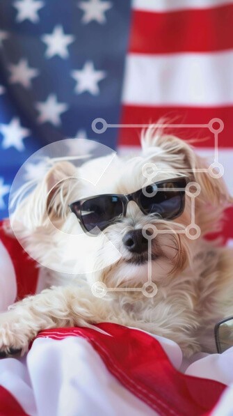 Υπάρχει δυνατότητα προσωποποίησης με δική σας φωτογραφία και προσαρμογής διαστάσεων κατόπιν παραγγελίας. Το συγεκεριμενο puzzle παρουσιαζει Η εικόνα απεικονίζει ένα μικρό, λευκό σκυλί που φοράει γυαλιά ηλίου και ξαπλώνει σε μια αμερικανική σημαία. Ο σκύλος φαίνεται να είναι χαλαρός και άνετος καθώς ακουμπάει στην κουβέρτα. Είναι πιθανό ότι ο σκύλος γιορτάζει την 4η Ιουλίου με τον ιδιοκτήτη του, ο οποίος μπορεί να