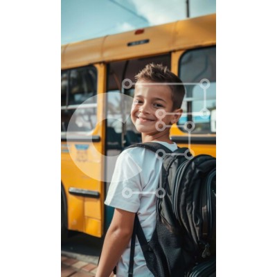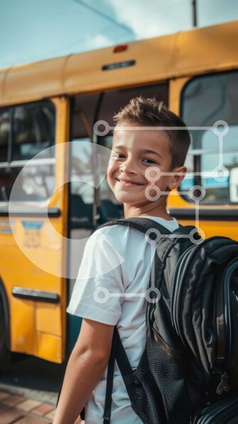 Υπάρχει δυνατότητα προσωποποίησης με δική σας φωτογραφία και προσαρμογής διαστάσεων κατόπιν παραγγελίας. Το συγεκεριμενο puzzle παρουσιαζει Η εικόνα δείχνει ένα νεαρό αγόρι να στέκεται μπροστά από ένα κίτρινο σχολικό λεωφορείο που πλησιάζει. Χαμογελάει και κρατάει το σακίδιό του, υποδηλώνοντας ότι είναι έτοιμος να πάει την πρώτη του μέρα στο σχολείο. Υπάρχουν πολλά άλλα άτομα στην εικόνα, συμπεριλαμβανομένων δύο ε