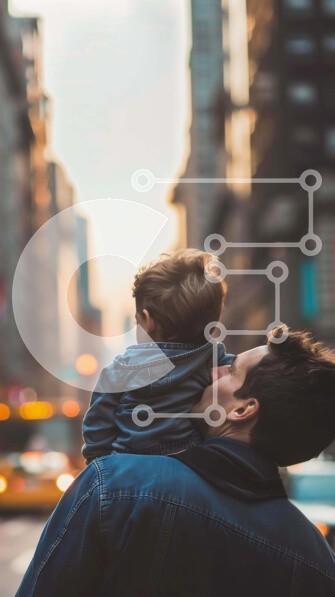 Υπάρχει δυνατότητα προσωποποίησης με δική σας φωτογραφία και προσαρμογής διαστάσεων κατόπιν παραγγελίας. Το συγεκεριμενο puzzle παρουσιαζει Η εικόνα δείχνει έναν άνδρα να κρατά το παιδί του στην αγκαλιά του καθώς περπατούν στο δρόμο. Υπάρχουν πολλά αυτοκίνητα και φανάρια ορατά στο φόντο της εικόνας, υποδηλώνοντας ότι η πόλη είναι πολυσύχναστη αυτή την ώρα της ημέρας. Ένα μικρό παιδί μπορεί να δει κανείς να κάθεται