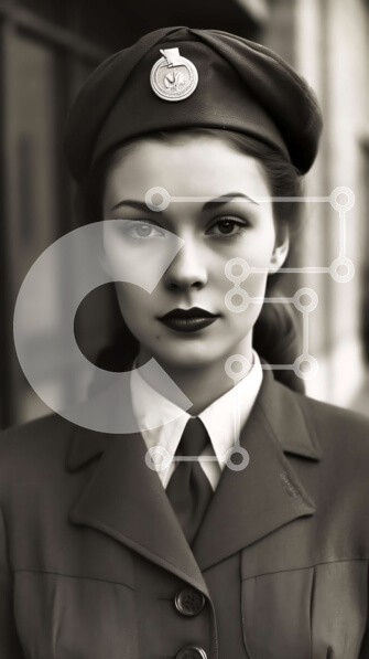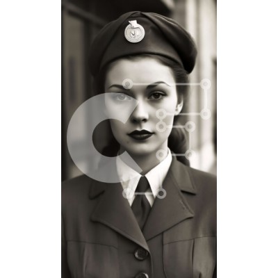 Υπάρχει δυνατότητα προσωποποίησης με δική σας φωτογραφία και προσαρμογής διαστάσεων κατόπιν παραγγελίας. Το συγεκεριμενο puzzle παρουσιαζει Αυτή είναι μια ασπρόμαυρη φωτογραφία μιας γυναίκας με στρατιωτική στολή, πιθανώς στρατιώτη. Φοράει καπέλο, σακάκι και παντελόνι με ζώνη και μπότες. Τα μαλλιά της είναι χτενισμένα σε bob και έχει κόκκινο κραγιόν. Κοιτάζει κατευθείαν την κάμερα με μια σοβαρή έκφραση. Ένα μοναδι