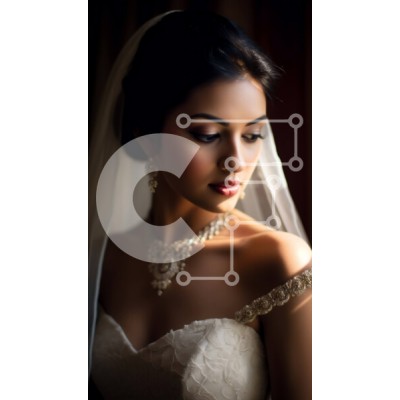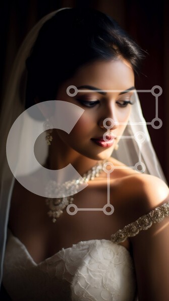 Υπάρχει δυνατότητα προσωποποίησης με δική σας φωτογραφία και προσαρμογής διαστάσεων κατόπιν παραγγελίας. Το συγεκεριμενο puzzle παρουσιαζει Αυτή η εικόνα παρουσιάζει μια όμορφη νύφη με λευκό νυφικό, με πέπλο και κολιέ με διαμάντια. Η νύφη συλλαμβάνεται να κοιτάζει μακριά, δημιουργώντας μια αίσθηση προσμονής και ενθουσιασμού. Αυτή η εικόνα είναι ιδανική για κάθε έργο που σχετίζεται με τον γάμο, καθώς αναδεικνύει τη