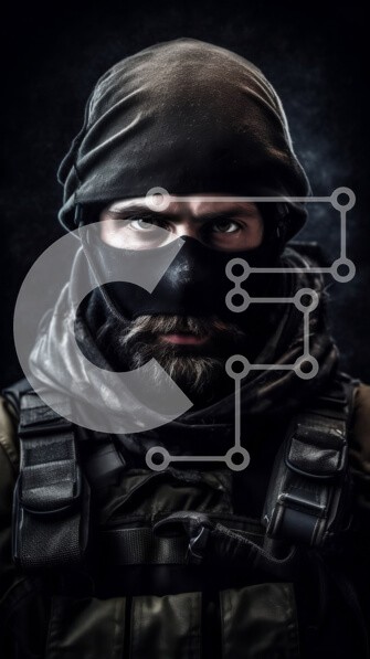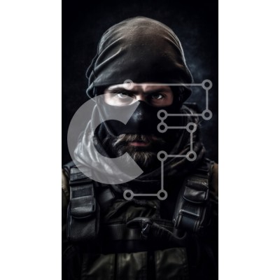 Υπάρχει δυνατότητα προσωποποίησης με δική σας φωτογραφία και προσαρμογής διαστάσεων κατόπιν παραγγελίας. Το συγεκεριμενο puzzle παρουσιαζει Αυτή η εικόνα απαθανατίζει έναν άνδρα με μαύρη μπαλακλάβα και κουκούλα, με ένα μαύρο σακίδιο στην πλάτη του. Έχει μούσι και μουστάκι και κοιτάζει κατευθείαν την κάμερα με μια σοβαρή έκφραση στο πρόσωπό του. Το φόντο είναι σκοτεινό και φαίνεται να είναι νυχτερινή σκηνή. Ένα μο