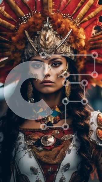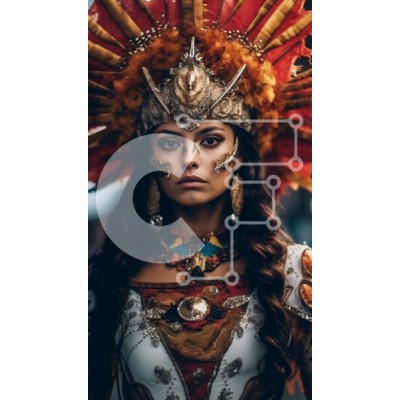 Υπάρχει δυνατότητα προσωποποίησης με δική σας φωτογραφία και προσαρμογής διαστάσεων κατόπιν παραγγελίας. Το συγεκεριμενο puzzle παρουσιαζει Αυτή η εικόνα παρουσιάζει μια γυναίκα με μια παραδοσιακή μεξικάνικη φορεσιά, με μια μεγάλη κόμμωση στολισμένη με φτερά και χάντρες. Κοιτάζει κατευθείαν την κάμερα με μια σοβαρή έκφραση στο πρόσωπό της, αποτυπώνοντας τη δύναμη και την ομορφιά της μεξικανικής κουλτούρας. Ένα μο