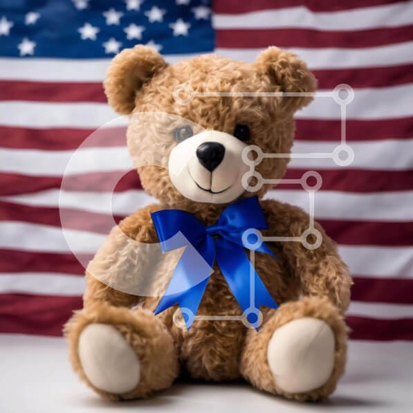 Υπάρχει δυνατότητα προσωποποίησης με δική σας φωτογραφία και προσαρμογής διαστάσεων κατόπιν παραγγελίας. Το συγεκεριμενο puzzle παρουσιαζει Η εικόνα δείχνει ένα αρκουδάκι να κάθεται μπροστά από μια αμερικανική σημαία. Η μπλε κορδέλα στο λαιμό της αρκούδας προσθέτει στη συνολική της ελκυστικότητα και την κάνει να ξεχωρίζει από την υπόλοιπη σκηνή. Μπορεί να χρησιμοποιηθεί για διακόσμηση για ειδικές περιστάσεις, όπως