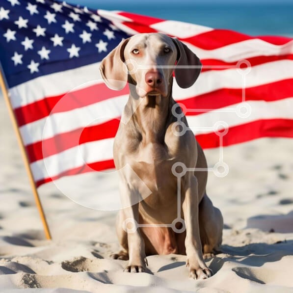 Υπάρχει δυνατότητα προσωποποίησης με δική σας φωτογραφία και προσαρμογής διαστάσεων κατόπιν παραγγελίας. Το συγεκεριμενο puzzle παρουσιαζει Η εικόνα δείχνει ένα σκυλί να κάθεται στην άμμο δίπλα σε μια αμερικανική σημαία και να το κοιτάζει με ενδιαφέρον. Η σκηνή υποδηλώνει μια στιγμή απόλαυσης, πιθανώς συνδεδεμένη με τον εορτασμό της 4ης Ιουλίου, με κόκκινες, λευκές και μπλε σημαίες στον περιβάλλοντα χώρο. Ένα μον