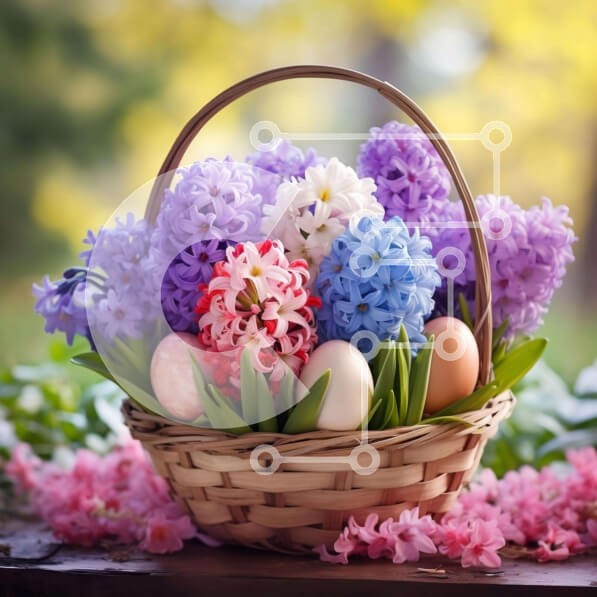 Υπάρχει δυνατότητα προσωποποίησης με δική σας φωτογραφία και προσαρμογής διαστάσεων κατόπιν παραγγελίας. Το συγεκεριμενο puzzle παρουσιαζει Αυτή η εικόνα δείχνει ένα καλάθι γεμάτο με πολύχρωμα λουλούδια και πασχαλινά αυγά. Το ζωντανό μείγμα από μωβ υάκινθους, ροζ κρίνους και λευκούς νάρκισσους δημιουργεί ένα όμορφο ανοιξιάτικο σκηνικό. Μερικά από τα λουλούδια εμφανίζονται φρεσκοκομμένα, προσθέτοντας στη φυσική γοη