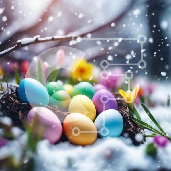 Υπάρχει δυνατότητα προσωποποίησης με δική σας φωτογραφία και προσαρμογής διαστάσεων κατόπιν παραγγελίας. Το συγεκεριμενο puzzle παρουσιαζει Η εικόνα παρουσιάζει μια φωλιά από πολύχρωμα πασχαλινά αυγά στο χιόνι, με νιφάδες χιονιού να πέφτουν από τον ουρανό. Είναι πιθανό ότι αυτά τα αυγά είναι μέρος μιας γιορτής του Πάσχα, καθώς έχουν διακοσμηθεί με διαφορετικά χρώματα και σχέδια για να γιορτάσουν τη γιορτή. Επιπλέο