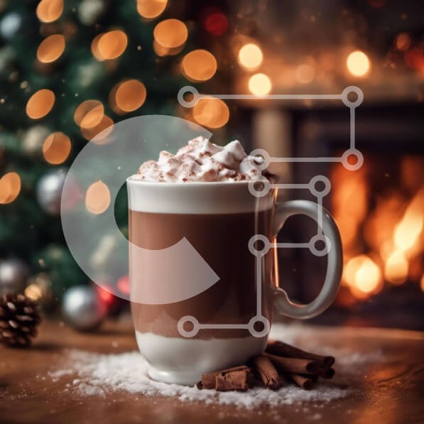 Υπάρχει δυνατότητα προσωποποίησης με δική σας φωτογραφία και προσαρμογής διαστάσεων κατόπιν παραγγελίας. Το συγεκεριμενο puzzle παρουσιαζει Αυτή η εικόνα δείχνει ένα φλιτζάνι ζεστό κακάο στολισμένο με ξυλάκια κανέλας και νιφάδες χιονιού. Το εορταστικό ποτό τοποθετείται μπροστά από ένα τεχνητό χριστουγεννιάτικο δέντρο στολισμένο με κόκκινα, πράσινα και λευκά στολίδια. Γύρω από την κούπα υπάρχουν πολλά κομμάτια μελό