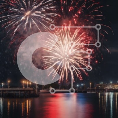 Υπάρχει δυνατότητα προσωποποίησης με δική σας φωτογραφία και προσαρμογής διαστάσεων κατόπιν παραγγελίας. Το συγεκεριμενο puzzle παρουσιαζει Η εικόνα δείχνει μια ζωντανή κόκκινη, λευκή και μπλε επίδειξη πυροτεχνημάτων που φωτίζει τον νυχτερινό ουρανό πάνω από το νερό. Ελλιμενισμένα σκάφη στο παρασκήνιο υπαινίσσονται το γεγονός που συμβαίνει κατά μήκος της ακτογραμμής. Τα πυροτεχνήματα απεικονίζουν μια μεγαλειώδη γι