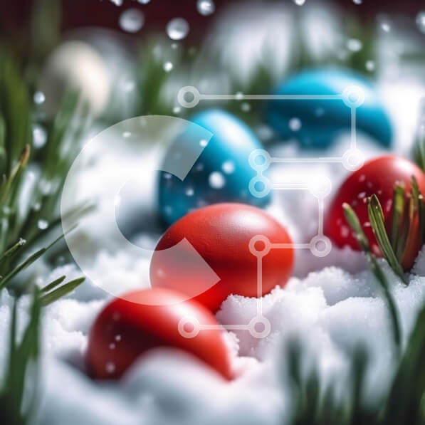 Υπάρχει δυνατότητα προσωποποίησης με δική σας φωτογραφία και προσαρμογής διαστάσεων κατόπιν παραγγελίας. Το συγεκεριμενο puzzle παρουσιαζει Η εικόνα δείχνει μια ομάδα πολύχρωμων πασχαλινών αυγών που ξεκουράζονται στο χιόνι, περιτριγυρισμένα από πράσινο γρασίδι και πευκοβελόνες. Το σκηνικό προτείνει μια γιορτινή διακόσμηση ή ένα πασχαλινό κυνήγι αυγών, προσθέτοντας το πνεύμα των γιορτών. Ένα μοναδικό puzzle που συ