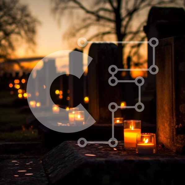 Υπάρχει δυνατότητα προσωποποίησης με δική σας φωτογραφία και προσαρμογής διαστάσεων κατόπιν παραγγελίας. Το συγεκεριμενο puzzle παρουσιαζει Η εικόνα καταγράφει μια γαλήνια σκηνή σε ένα νεκροταφείο το ηλιοβασίλεμα, με σειρές από επιτύμβιες στήλες και αναμμένα κεριά να δημιουργούν μια γαλήνια ατμόσφαιρα. Το φως που ξεθωριάζει προσθέτει στην ήρεμη ατμόσφαιρα, καθιστώντας το ένα συγκλονιστικό και ανακλαστικό σκηνικό.