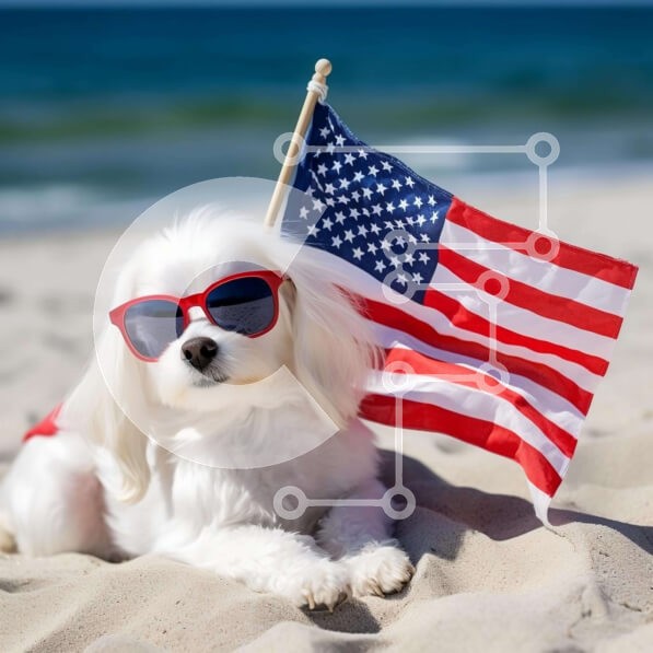 Υπάρχει δυνατότητα προσωποποίησης με δική σας φωτογραφία και προσαρμογής διαστάσεων κατόπιν παραγγελίας. Το συγεκεριμενο puzzle παρουσιαζει Η εικόνα δείχνει ένα μικρό λευκό σκυλί που φοράει γυαλιά ηλίου και κρατά μια αμερικανική σημαία στην άμμο στην παραλία. Ο σκύλος μπορεί να γιορτάζει την 4η Ιουλίου με τον ιδιοκτήτη του ή μπορεί απλώς να απολαμβάνει τη μέρα με την οικογένειά του. Είναι πιθανό ο σκύλος να παίζει