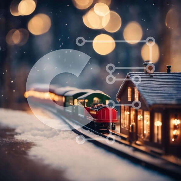 Υπάρχει δυνατότητα προσωποποίησης με δική σας φωτογραφία και προσαρμογής διαστάσεων κατόπιν παραγγελίας. Το συγεκεριμενο puzzle παρουσιαζει Αυτή η εικόνα παρουσιάζει ένα τρένο παιχνίδι που ταξιδεύει κατά μήκος των σιδηροδρομικών γραμμών στο χιόνι, με φώτα και διακοσμητικά να το περιβάλλουν. Το τρένο φαίνεται να βρίσκεται στη δική του γραμμή, κάτι που μπορεί να υποδηλώνει ότι είναι μέρος μιας περίτεχνης εγκατάσταση