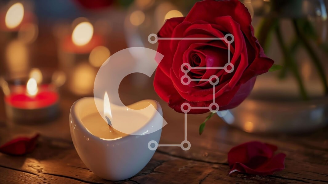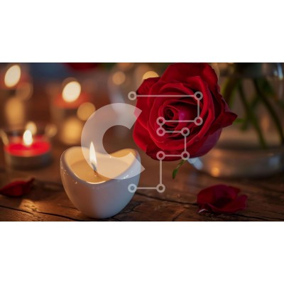 Υπάρχει δυνατότητα προσωποποίησης με δική σας φωτογραφία και προσαρμογής διαστάσεων κατόπιν παραγγελίας. Το συγεκεριμενο puzzle παρουσιαζει Αυτή η εικόνα παρουσιάζει ένα κερί σε σχήμα καρδιάς τοποθετημένο στο κέντρο, που περιβάλλεται από κόκκινα τριαντάφυλλα και άλλα λουλούδια. Η σκηνή υποδηλώνει μια οικεία γιορτή ή ρομαντική εκδήλωση, με πολλά κεριά τοποθετημένα γύρω από το τραπέζι. Μερικά από τα κεριά φαίνεται ν