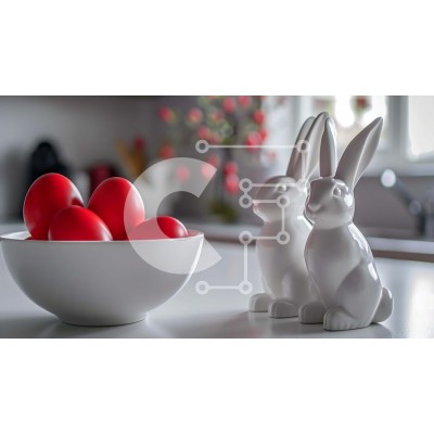 Υπάρχει δυνατότητα προσωποποίησης με δική σας φωτογραφία και προσαρμογής διαστάσεων κατόπιν παραγγελίας. Το συγεκεριμενο puzzle παρουσιαζει Αυτή η εικόνα αποτυπώνει την ουσία του Πάσχα με δύο λευκά ειδώλια κουνελιών τοποθετημένα σε ένα τραπέζι δίπλα σε ένα μπολ με κόκκινα αυγά. Το τραπέζι είναι στολισμένο με πιάτα, φλιτζάνια και χαρτοπετσέτες, δημιουργώντας μια γιορτινή ατμόσφαιρα για τη γιορτή. Ένα μοναδικό puzz