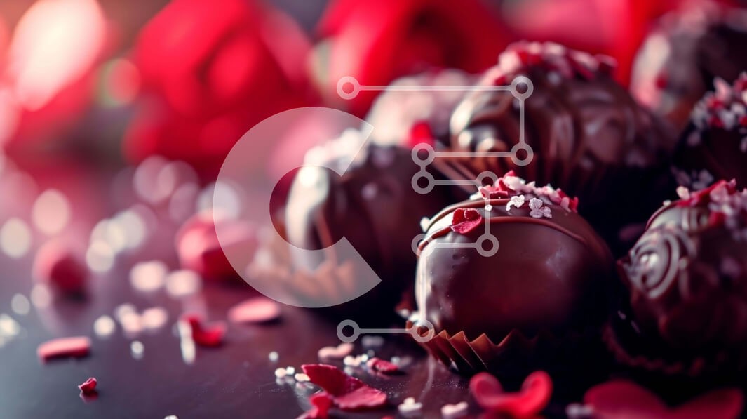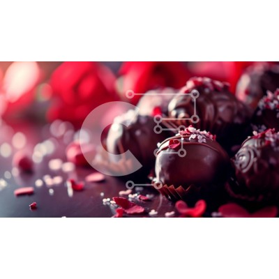 Υπάρχει δυνατότητα προσωποποίησης με δική σας φωτογραφία και προσαρμογής διαστάσεων κατόπιν παραγγελίας. Το συγεκεριμενο puzzle παρουσιαζει Αυτή η εικόνα παρουσιάζει μια ομάδα από τρούφες σοκολάτας τοποθετημένες πάνω από κόκκινα τριαντάφυλλα και σκορπισμένες γύρω από ένα τραπέζι. Η σκηνή ενισχύεται περαιτέρω με μικρά κομμάτια καραμέλας πασπαλισμένα παντού, δημιουργώντας μια ρομαντική ατμόσφαιρα. Είναι μια τέλεια α