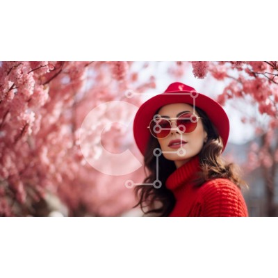 Υπάρχει δυνατότητα προσωποποίησης με δική σας φωτογραφία και προσαρμογής διαστάσεων κατόπιν παραγγελίας. Το συγεκεριμενο puzzle παρουσιαζει Αυτή η εικόνα δείχνει μια γυναίκα που φορά ένα κόκκινο πουλόβερ και γυαλιά ηλίου να ποζάρει μπροστά από ροζ ανθισμένα δέντρα κερασιάς. Φαίνεται να απολαμβάνει την ομορφιά των ανθισμένων λουλουδιών και αποπνέει μια αίσθηση διασκέδασης με το ελκυστικό κόκκινο καπέλο και τα πολύχ