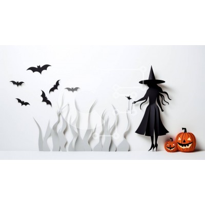 Υπάρχει δυνατότητα προσωποποίησης με δική σας φωτογραφία και προσαρμογής διαστάσεων κατόπιν παραγγελίας. Το συγεκεριμενο puzzle παρουσιαζει Αυτή η εικόνα παρουσιάζει μια μάγισσα κομμένη από χαρτί που στέκεται μπροστά από κολοκύθες και νυχτερίδες. Μπορεί να χρησιμοποιηθεί ως διακόσμηση για το Halloween ή ως μέρος μιας καλλιτεχνικής εγκατάστασης. Αφήστε τη δημιουργικότητά σας να κυλήσει και εμπνευστείτε για να φτιάξ