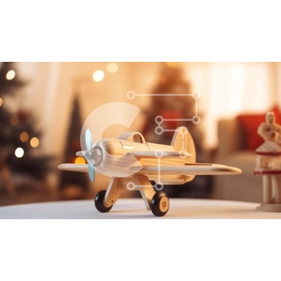 Υπάρχει δυνατότητα προσωποποίησης με δική σας φωτογραφία και προσαρμογής διαστάσεων κατόπιν παραγγελίας. Το συγεκεριμενο puzzle παρουσιαζει Αυτή η εικόνα δείχνει ένα ξύλινο παιχνίδι αεροπλάνο τοποθετημένο σε ένα τραπέζι σε ένα άνετο σαλόνι. Το αεροπλάνο είναι διακοσμημένο με διάφορα χριστουγεννιάτικα στολίδια και διακοσμητικά, όπως ειδώλια ταράνδων, χριστουγεννιάτικα δέντρα και σφαίρες χιονιού. Η γύρω περιοχή διαθ