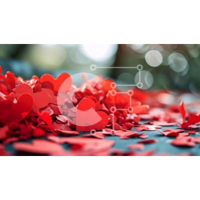 Υπάρχει δυνατότητα προσωποποίησης με δική σας φωτογραφία και προσαρμογής διαστάσεων κατόπιν παραγγελίας. Το συγεκεριμενο puzzle παρουσιαζει Αυτή η εικόνα παρουσιάζει ένα σωρό από κόκκινα κομμάτια χαρτιού σε σχήμα καρδιάς διάσπαρτα στο έδαφος. Οι καρδιές είναι ενδεικτικές μιας γιορτής, πιθανώς του Αγίου Βαλεντίνου ή άλλης ειδικής περίστασης. Η εικόνα έχει ένα ελαφρύ εφέ θολώματος γύρω από τις άκρες, υποδηλώνοντας ό